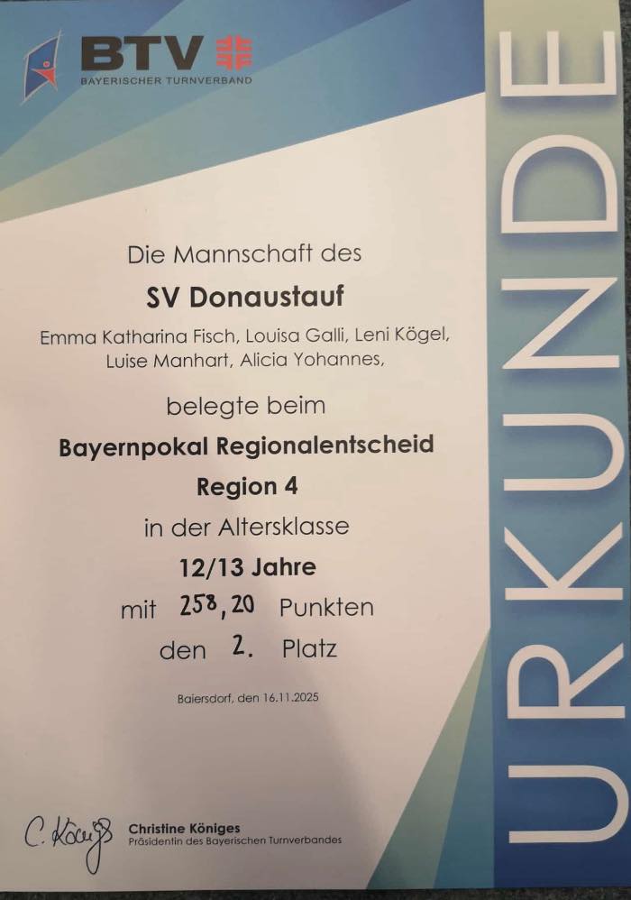 Beim heutigen Regionalentscheid in Baiersdorf erreichte unsere P-Leistungsturngruppe einen ausgezeichneten 2.Platz! 🏆